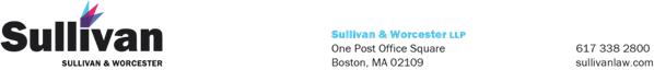 | /s/ Sullivan & Worcester LLP | |